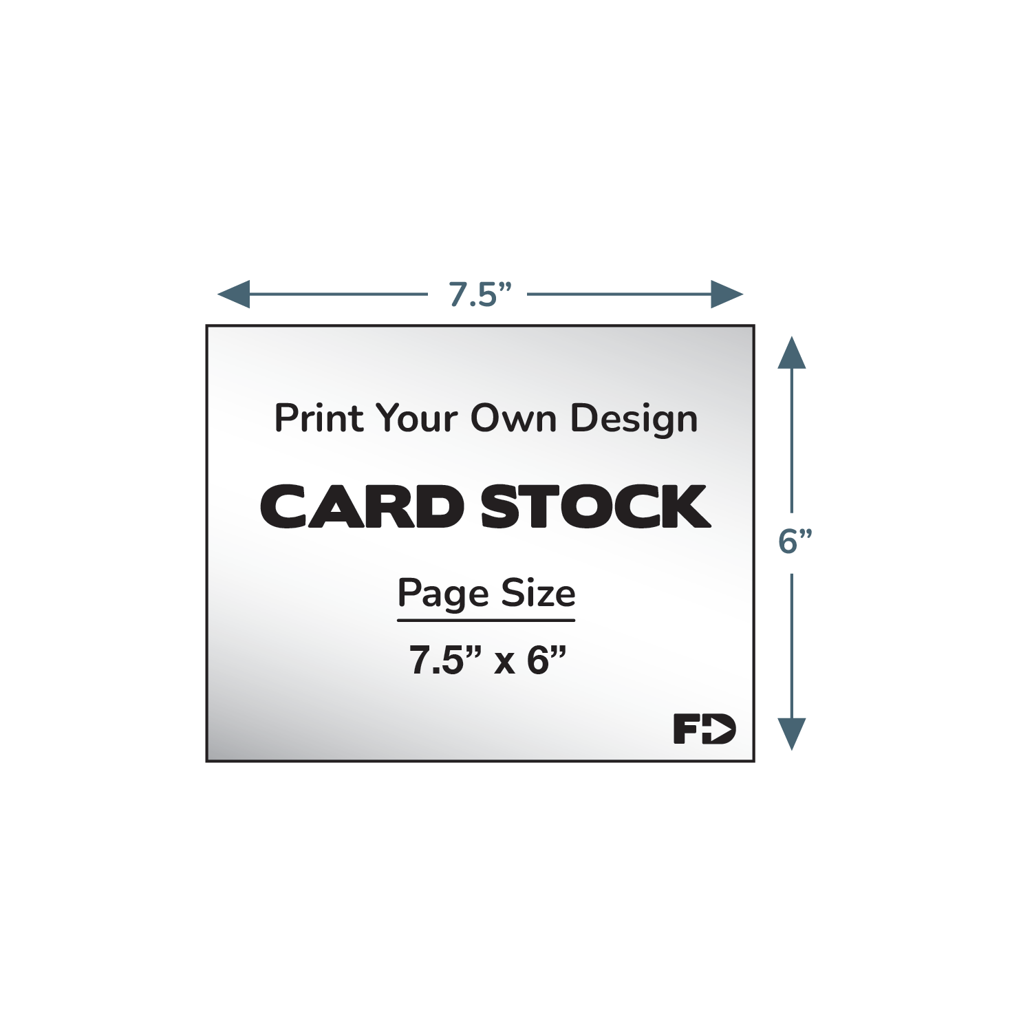 The 7.5″ x 6″ | Card Stock has dimensions that are 7.5″ wide and 6″ deep. Our 65 lb White Card Stock has the perfect balance between the flexibility of printer paper and the durability of cardboard. Perfect for when your form has to survive the worksite with you. The added option of scoring (into a two-fold, tri-fold or 4-panel depending on your page size) makes your card even more portable. From a full-sized page into a handy pocket size format.
