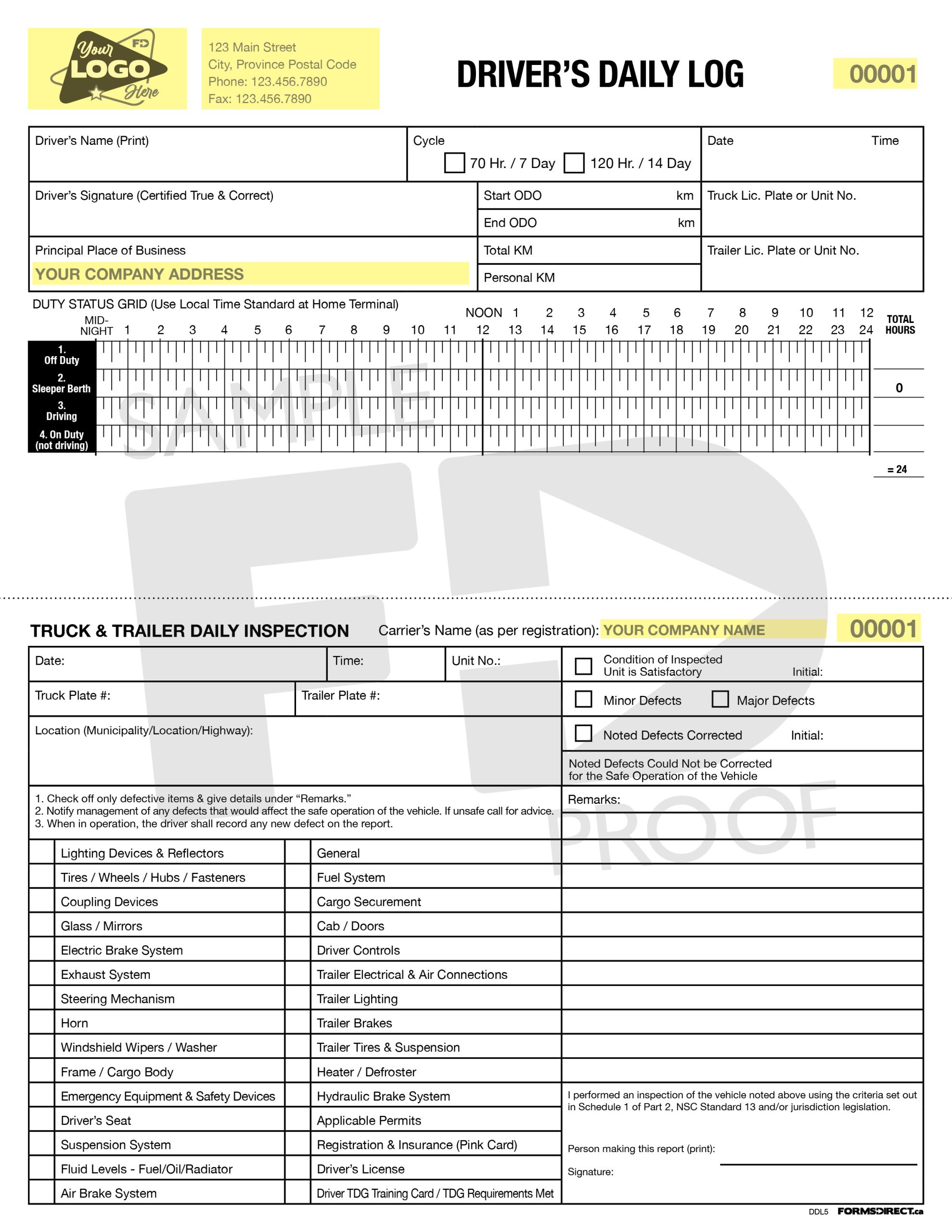 DDL5 provides both a Driver’s Daily Log (for both 70-hour and 120-hour cycles) and a Truck & Trailer Daily Inspection. The lower half inspection report follows Schedule 1 guidelines and provides ample space for writing in remarks. You can feel comfortable knowing that you’ve provided all the required information on your Driver’s Daily Log (e.g. driver name; addresses for home terminal and principal place of business; unit and license plate numbers for both truck and trailer; total hours for each duty status; total hours in the day; cumulative cycle; start time of the day; driver signature; etc.) as laid out in Commercial Vehicle Drivers Hours of Service Regulations.
