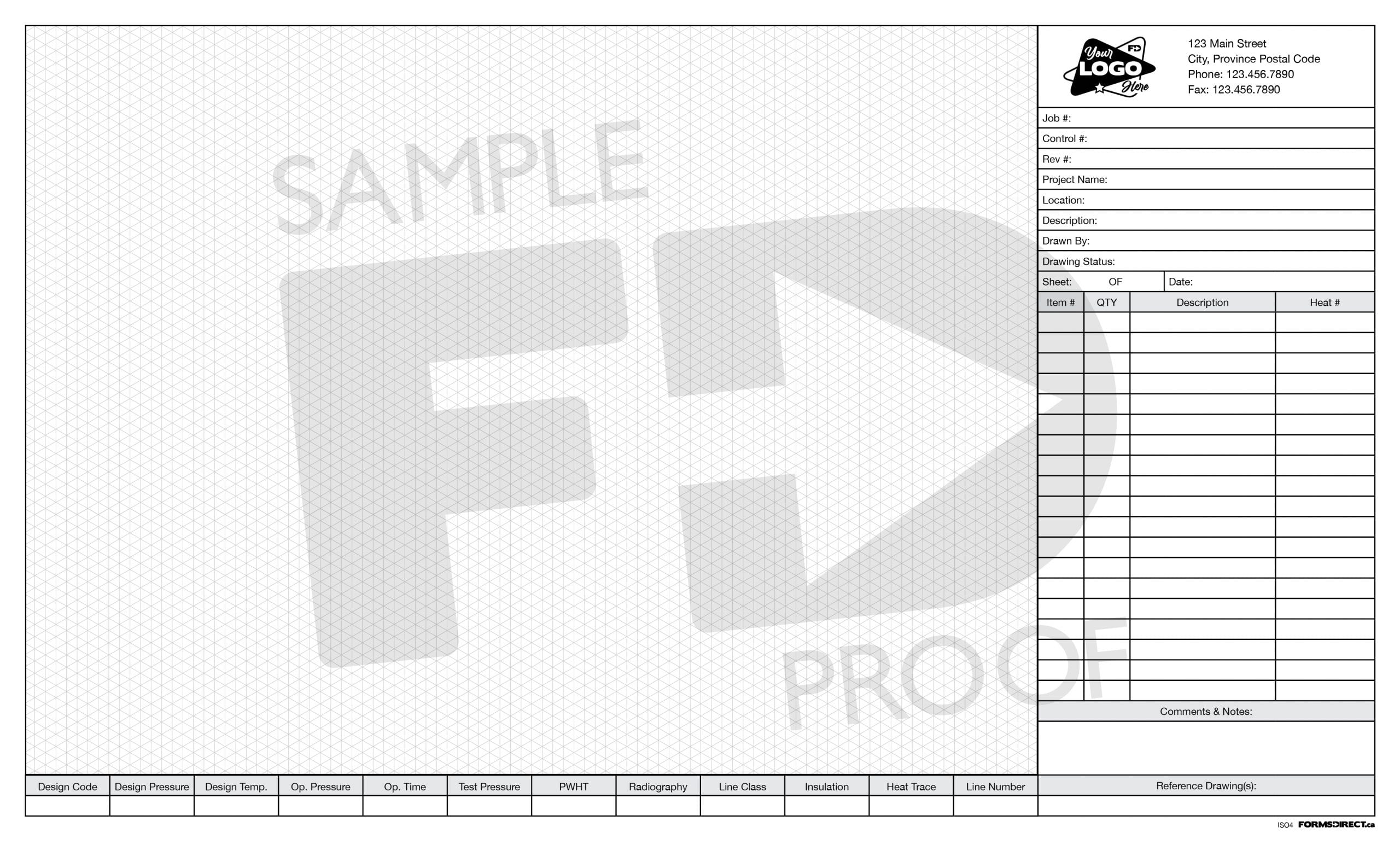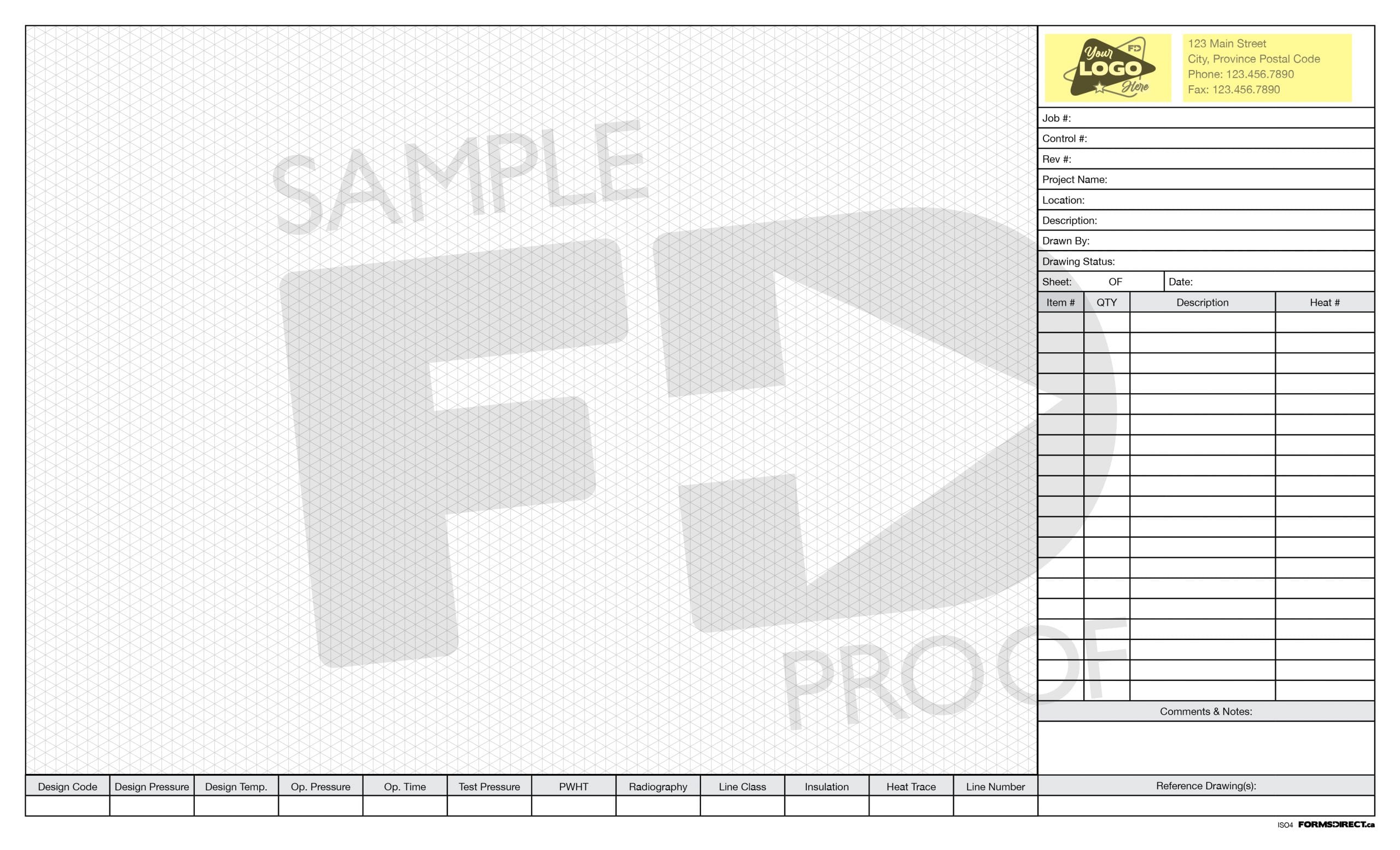 The Isometric Pad | ISO4 template is designed for use on industrial worksites. Made for a legal page size with a landscape orientation (14″ x 8.5″), the available graph section measures at 10.125″ wide and 7.5″ deep. Need any of the field names modified to fit your company’s specific needs? Just click HERE to visit the Print Your Own Design (Notepad) page. Use “ISO4” in the Template Code box to reference this template design and detail the requested modifications in the Special Instructions field.
